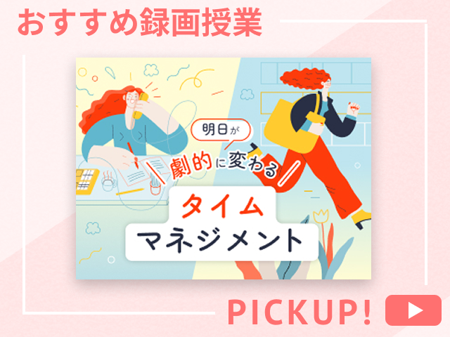 19のカテゴリ9,000本以上の授業をいつでも受講可能。その時々の自分のニーズに合った「今日から役立つ実践スキル」が見つかります。