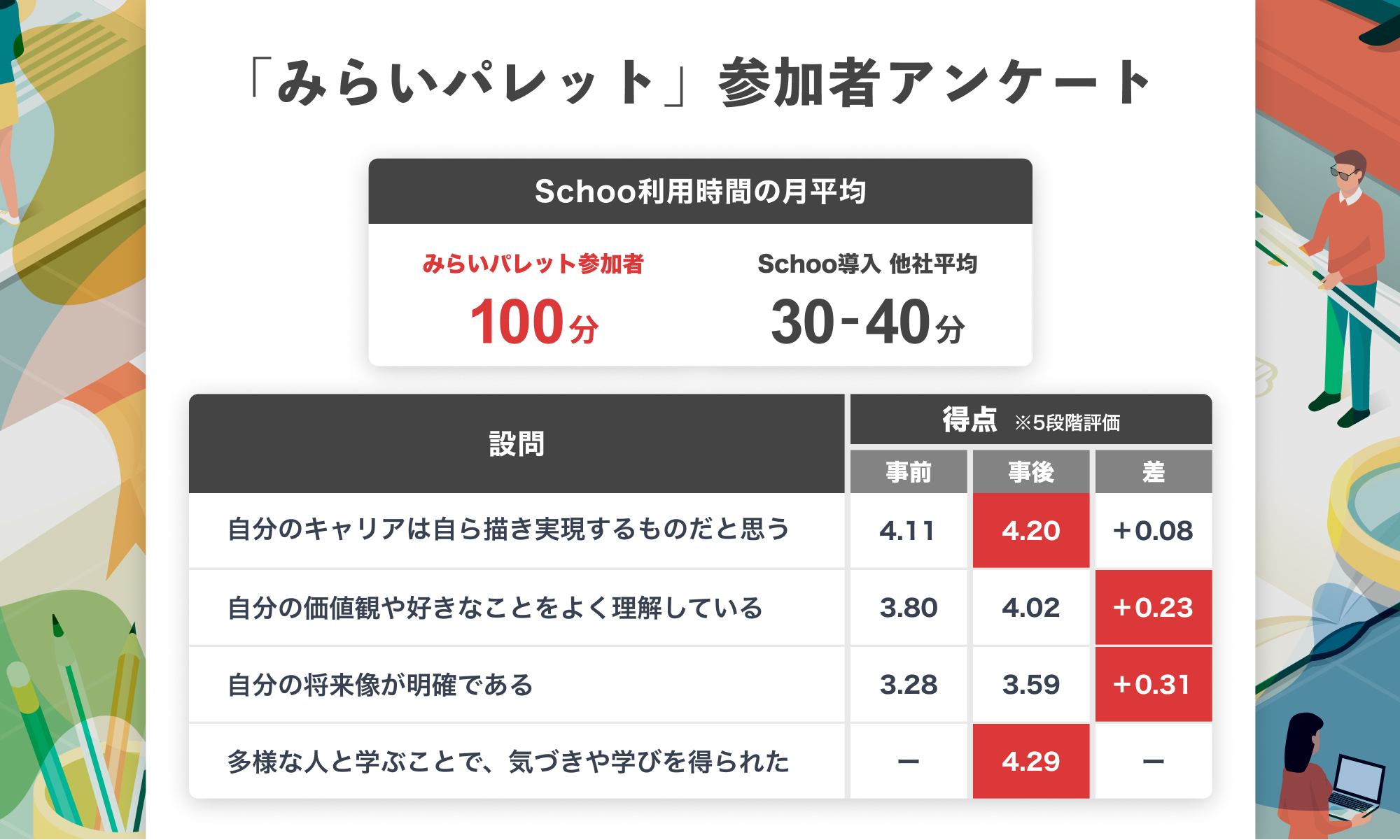 さらに、参加者に向けて実施した事後アンケート結果からも、「キリンみらいパレット」が社員のキャリア観や学びに対して大きな影響を与えていることが明らかになっています。