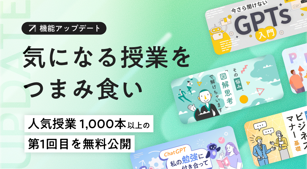 シリーズ授業の1回目が、1,000本以上無料で視聴可能になりました。
